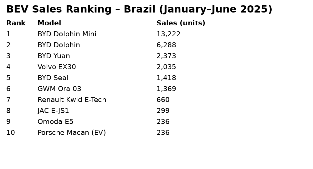 Some months in 2025 broke records, with more than 24,000 electrified vehicles (BEV + PHEV + HEV) sold in a single month. This is a clear sign that electric vehicles are becoming more widespread in Brazil, even if combustion engines remain the dominant mode.