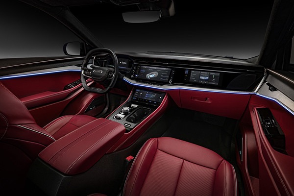 On board, the Wagoneer S boasts a resolutely premium feel. Jeep is showcasing more than 45 inches of combined screens, including a digital instrument cluster, a large central screen and a dedicated screen for the front passenger, all powered by the Uconnect 5 system. The move upmarket is also evident in the audio system, with up to 19 speakers, more than 1,100 watts of power and, depending on the market, a McIntosh signature. The driving aids are just as ambitious, with over 170 assistance and safety functions announced for certain versions.