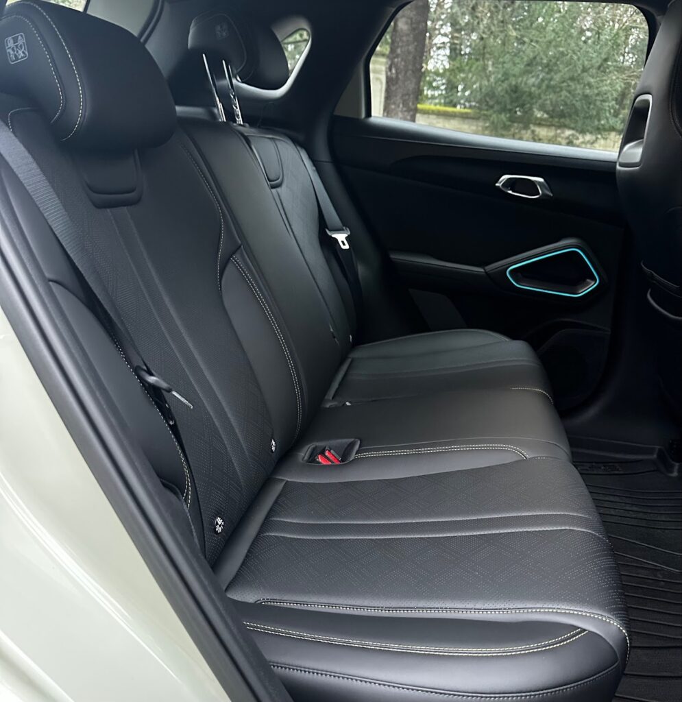 Sans surprise, l’arrière n’est pas le point fort de l’ATTO 2. L’espace est suffisant mais pas immense, surtout pour des adultes sur longs trajets. Les assises restent confortables, y compris celle du milieu qui n’est pas dotée d’un vrai siège mais qui est étonnamment moelleuse.