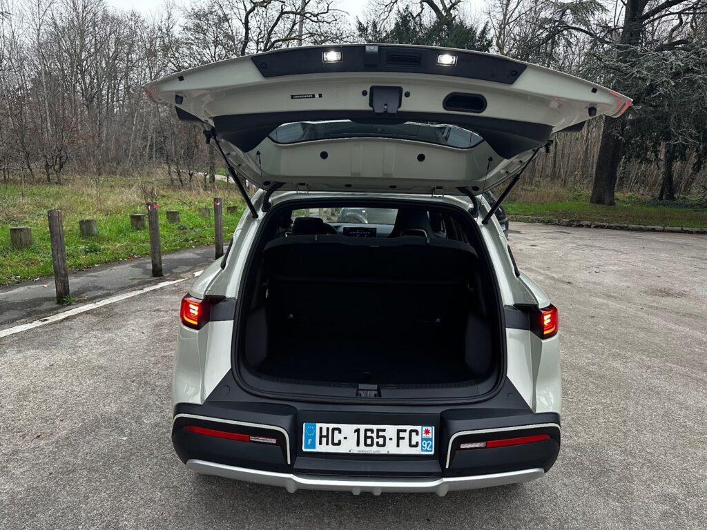 Un détail surprend toutefois : pour un véhicule commercialisé en France en 2025, l’ouverture et la fermeture du coffre sont entièrement manuelles. Ce n’est pas rédhibitoire, mais un peu étonnant sur un modèle aussi moderne et équipé technologiquement parlant.