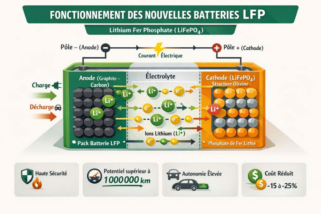 Moins chères, plus durables et désormais plus performantes, les batteries LFP de nouvelle génération s’imposent doucement mais sûrement comme une solution clé pour faire baisser le prix des véhicules électriques en Europe. Derrière cette chimie longtemps cantonnée à l’entrée de gamme se joue aujourd’hui un basculement industriel, économique et stratégique majeur pour les constructeurs européens.
